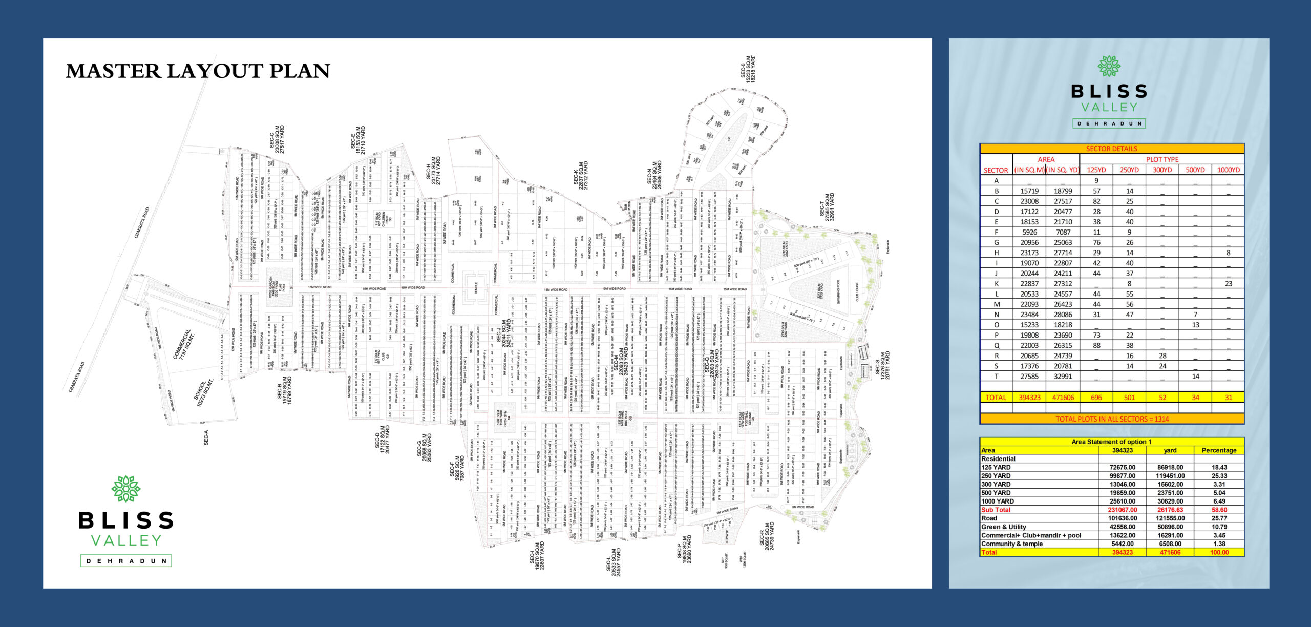 Plots Sizes: 125 Sq. Yards, 250 Sq. Yards, 500 Sq. Yards.